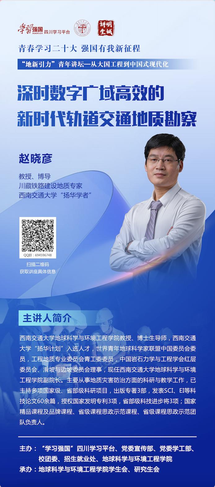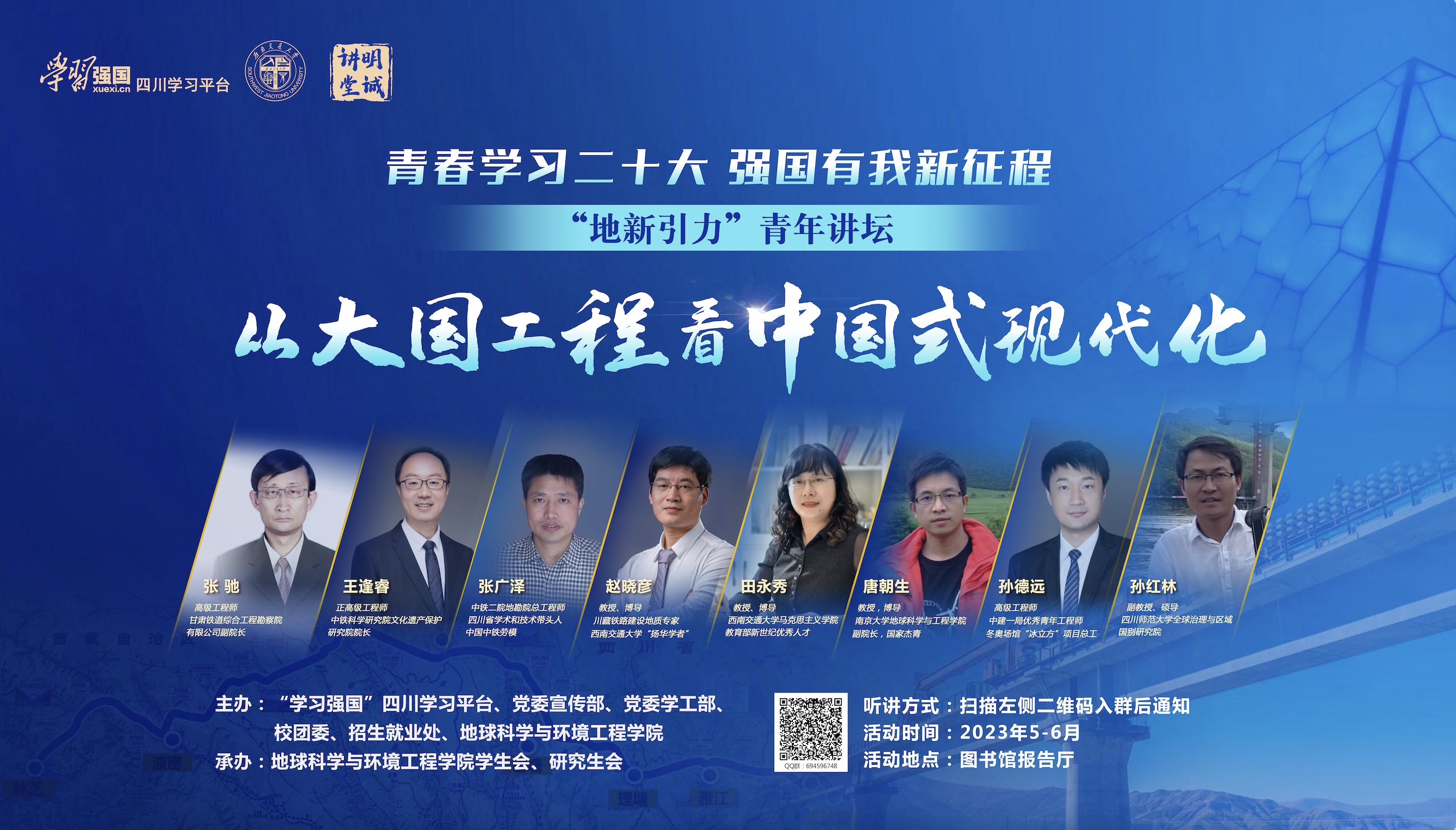 为学习宣传贯彻党的二十大精神,充分发挥公司轨道交通相关学科优势,引领广大青年员工将小我融入大我,以青春实践奉献祖国,在新时代新征程中奋勇争先建功立业,使青年一代在大国工程一线受教育、长才干、做贡献。bevictor伟德官网在“学习强国”四川学习平台、党委宣传部、党委学工部、校团委以及人才招聘处的支持下,邀请了大国工程一线以及思想政治教育与人文社科领域的专家、学者、教授为主讲嘉宾,通过“地新引力”青年讲坛的方式,为青年员工解惑授业、增知识、长才干,号召广老员工立志做有理想、敢担当、能吃苦、肯奋斗的新时代好青年。2023年5月4日,值此青年节之际,“地新引力”青年讲坛——“从大国工程看中国式现代化”开讲仪式暨专题一、专题二讲座即将开始,现就相关通知如下: