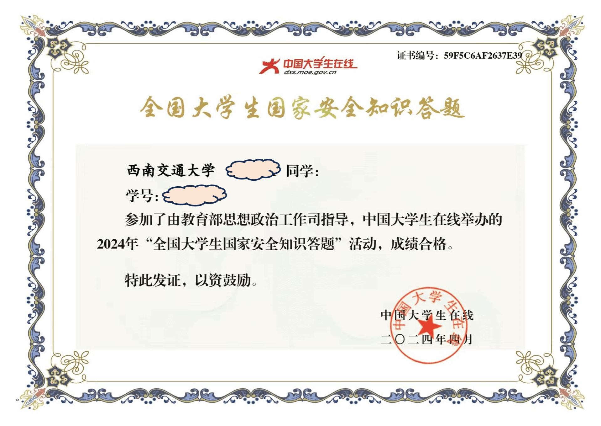 老员工国家安全知识竞赛证书