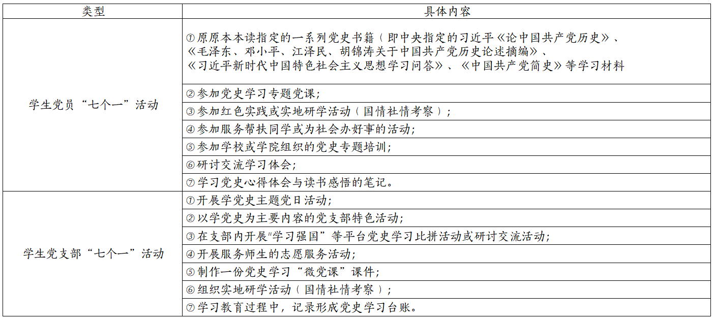 附:党委学工部发布的“学党史,强信念,跟党走”员工党支部和员工党员“七个一”活动要求