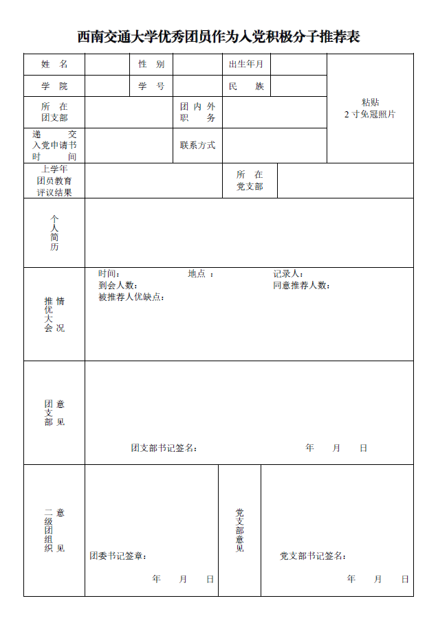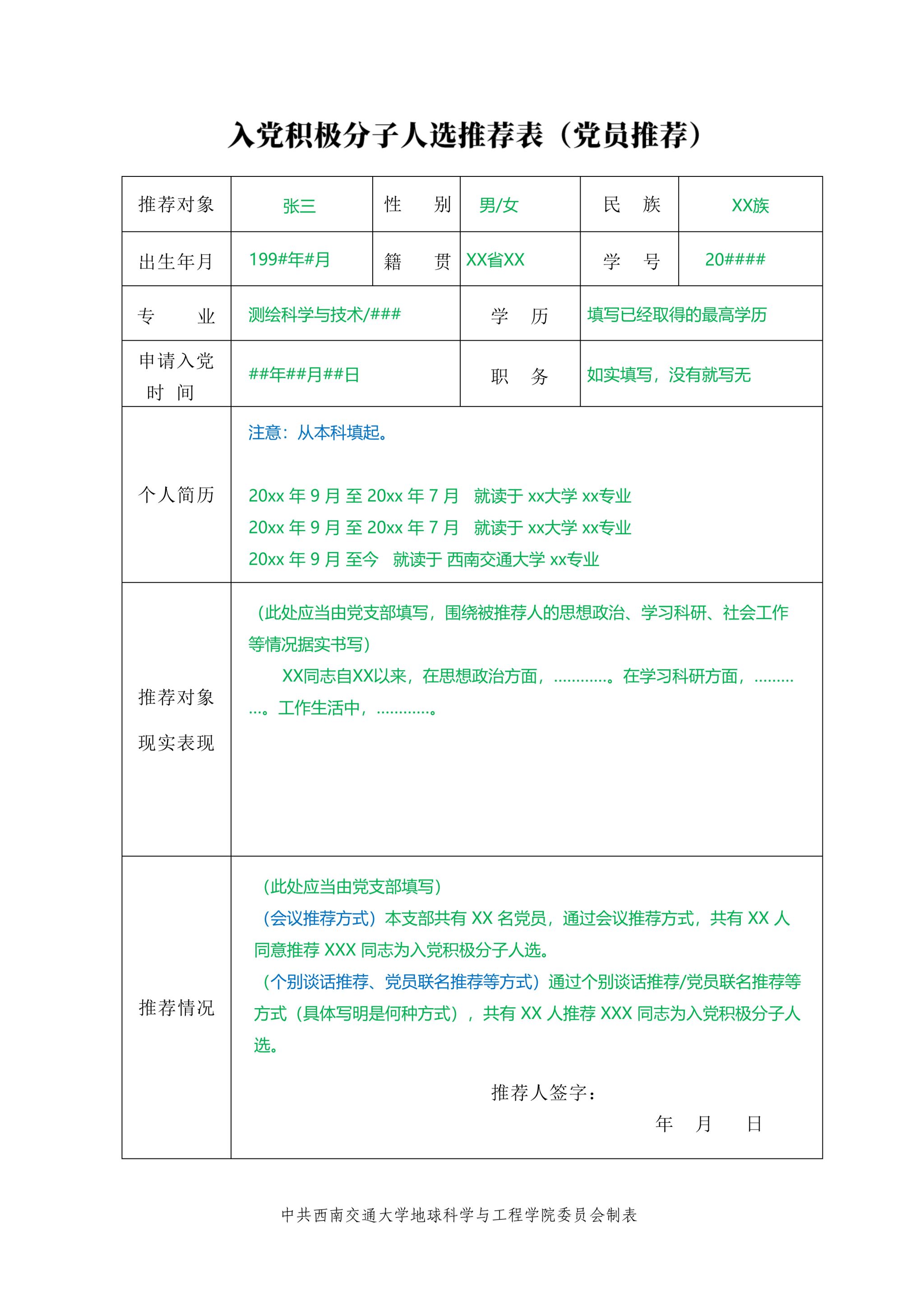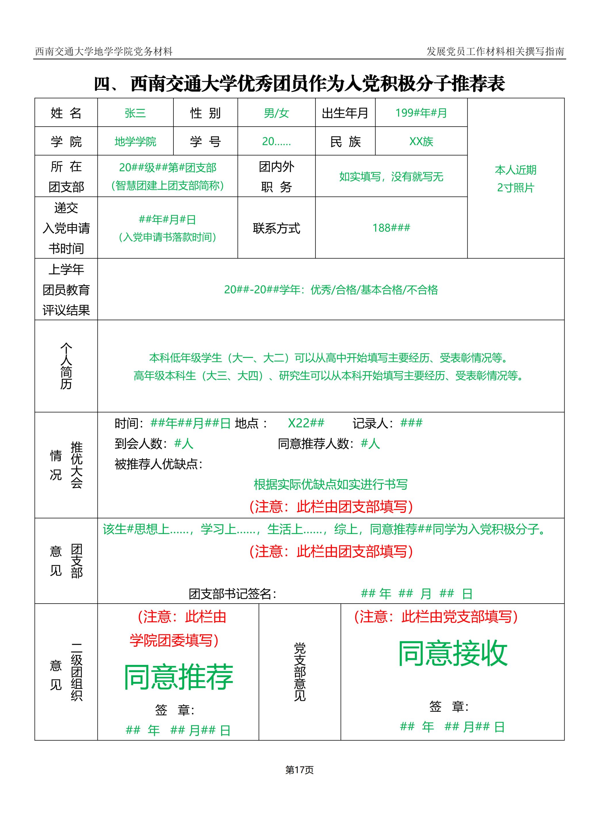 bevictor伟德官网优秀团员作为入党积极分子推荐表撰写指南: