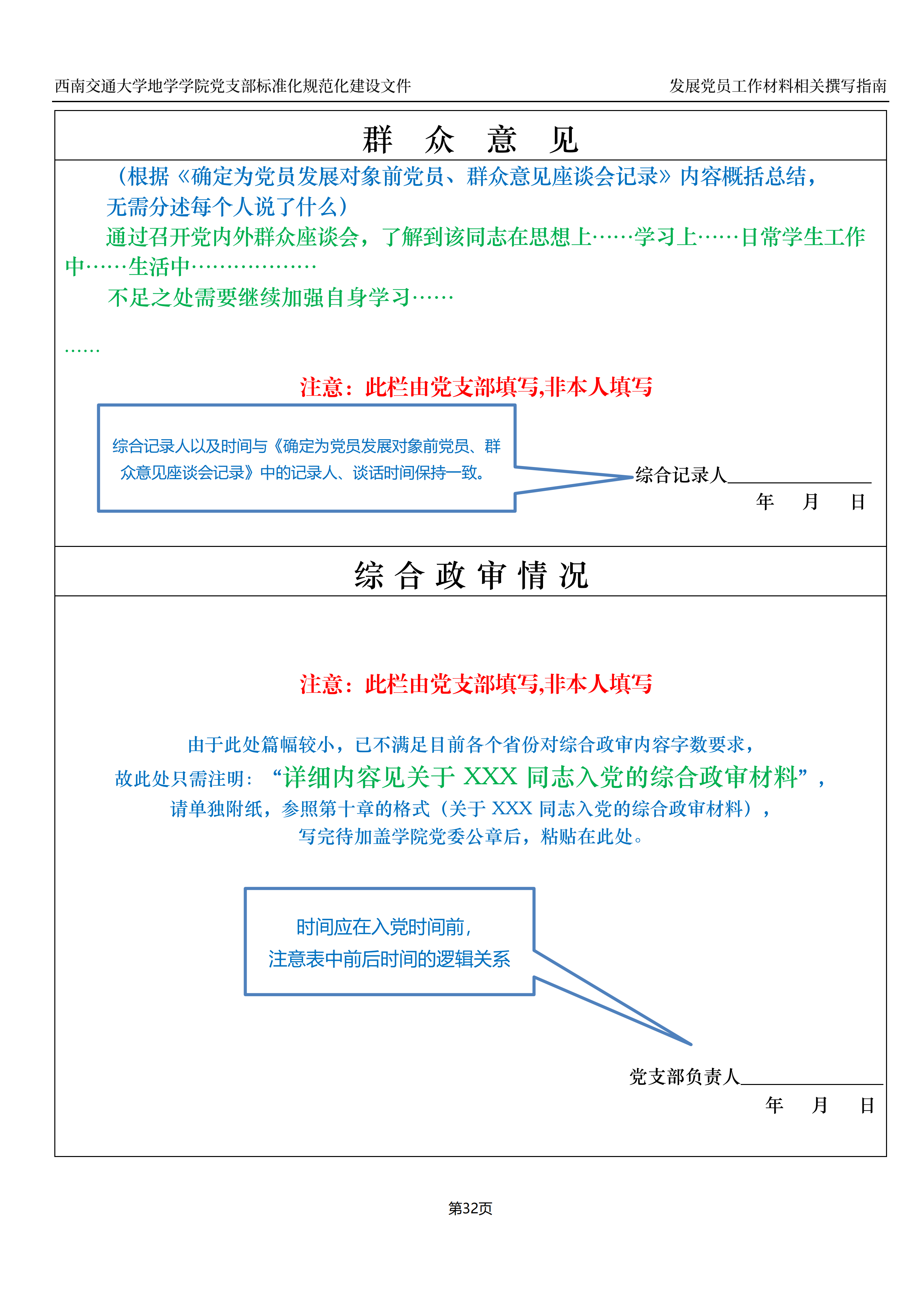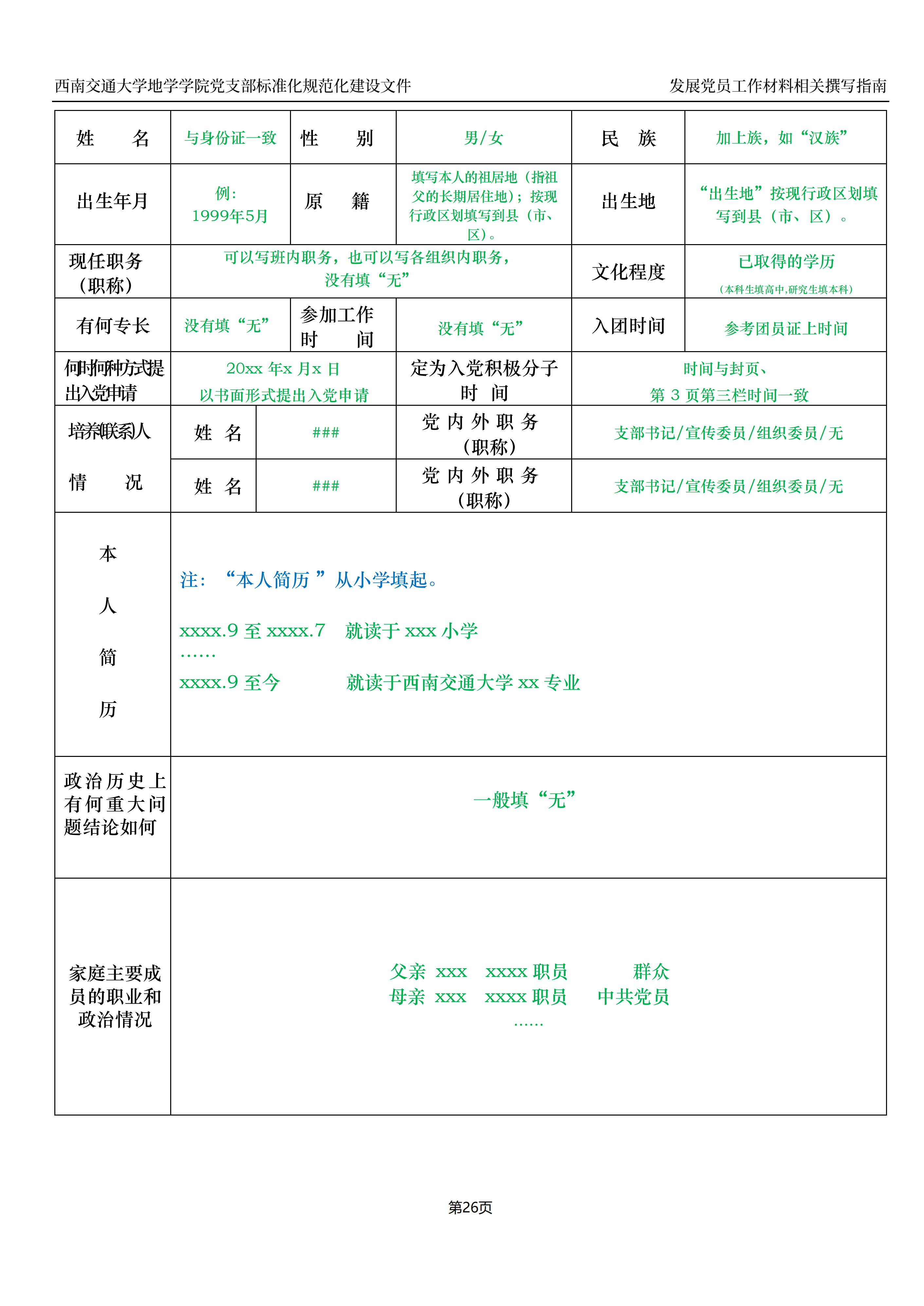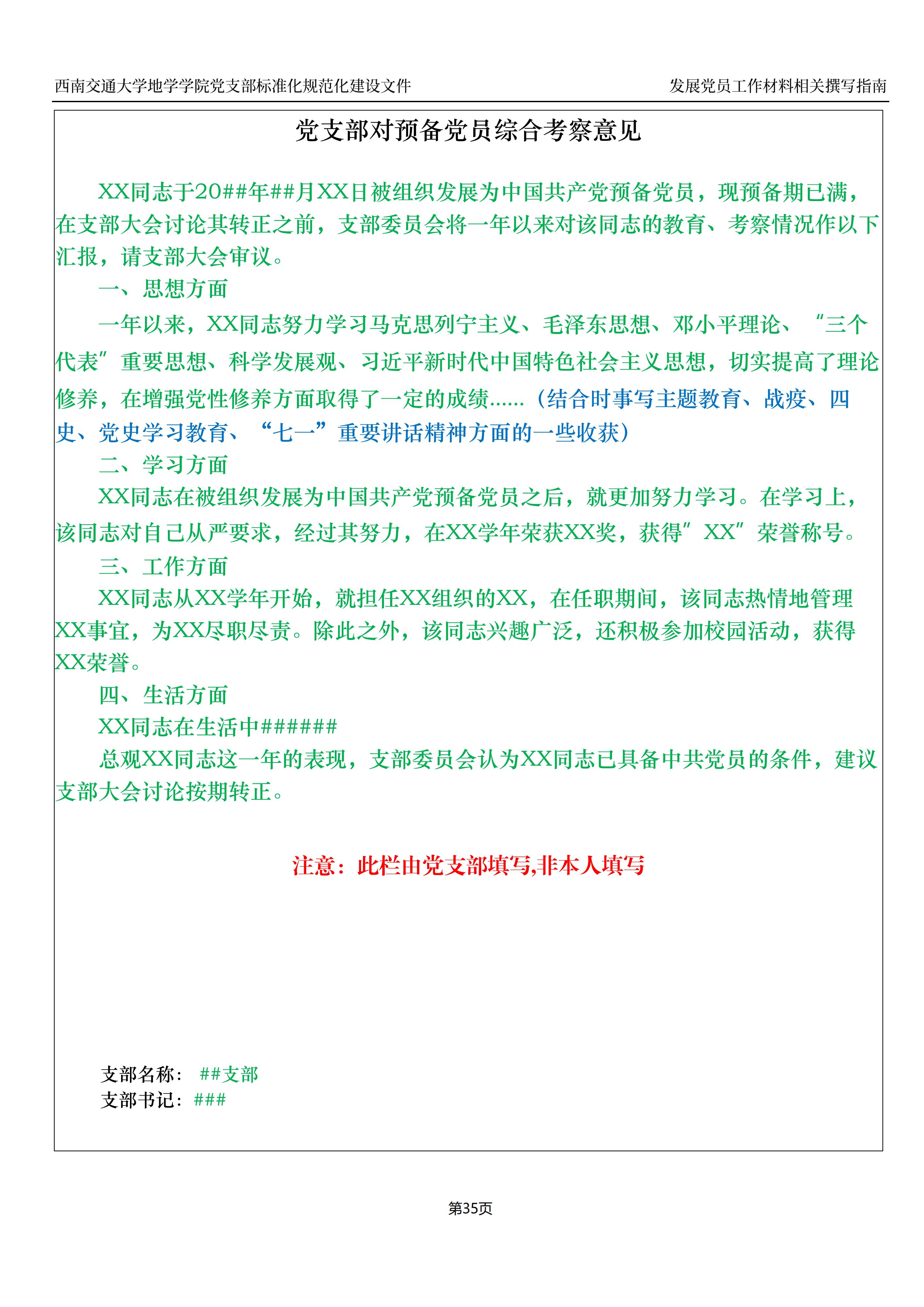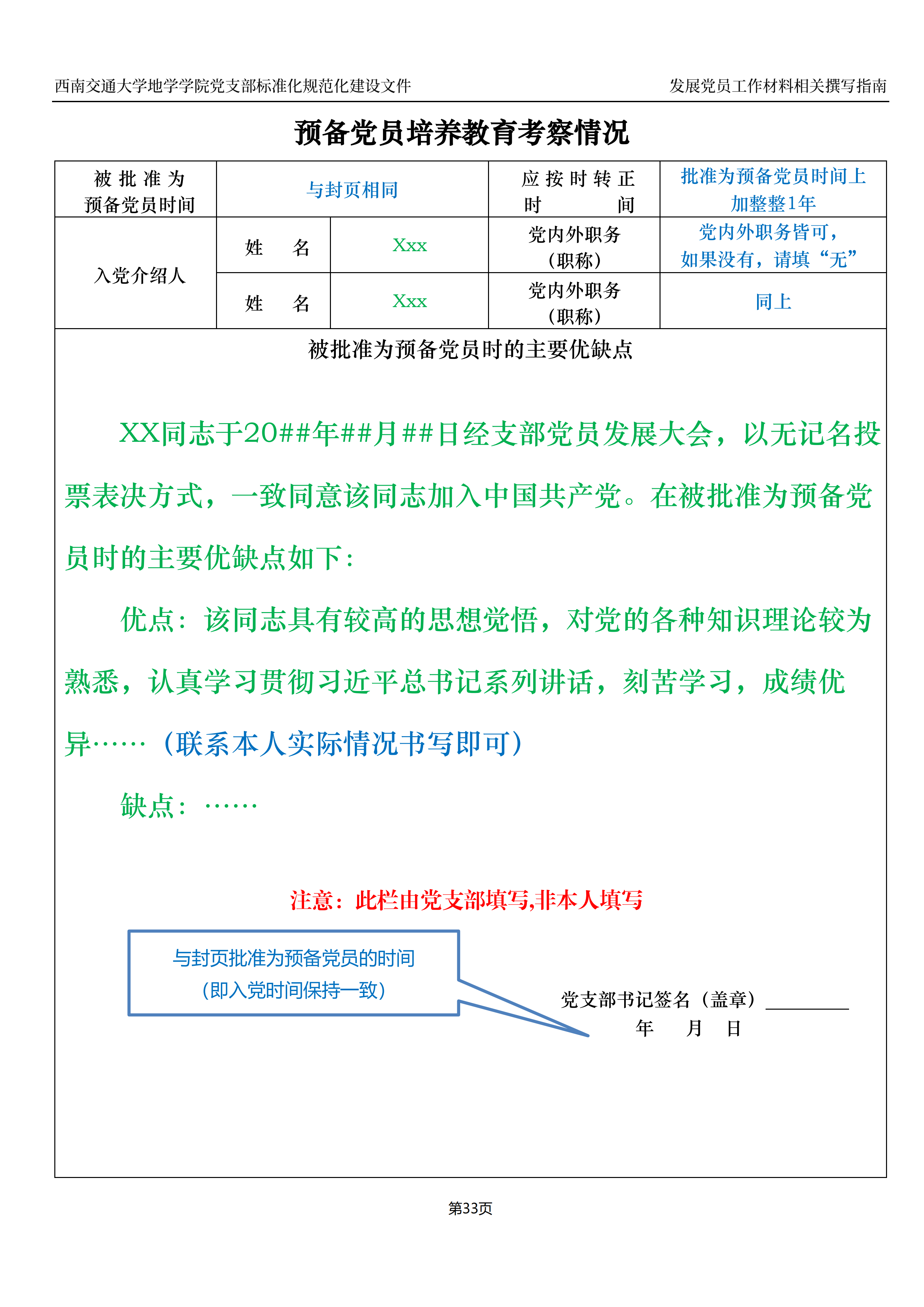 入党积极分子、预备党员培养教育考察登记表撰写指南: