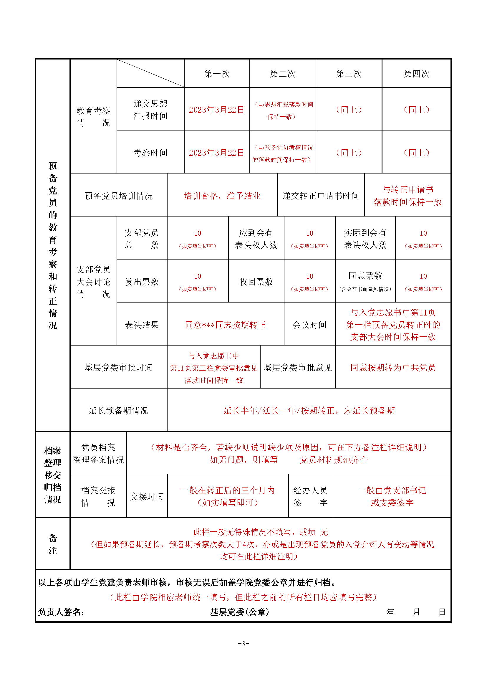 版本1:适用于在本院提交入党申请后,全程一直在本院发展入党的同志(适用于院内绝大部分发展入党的同志)