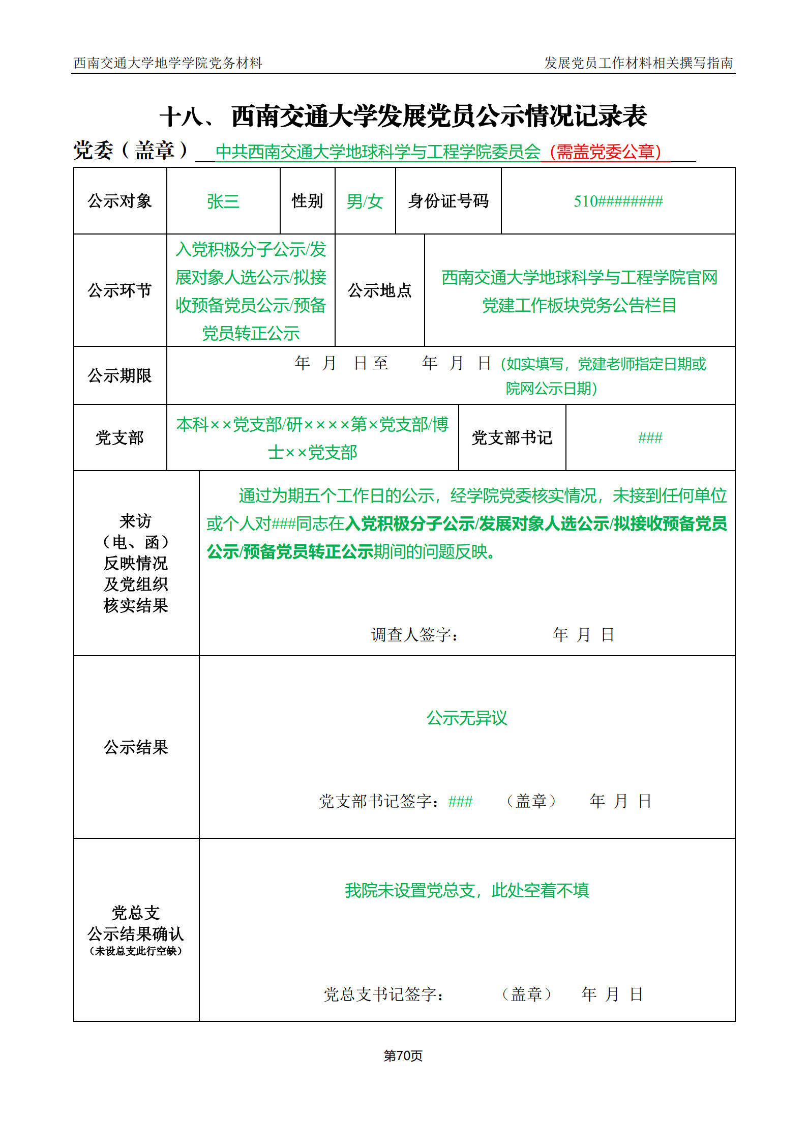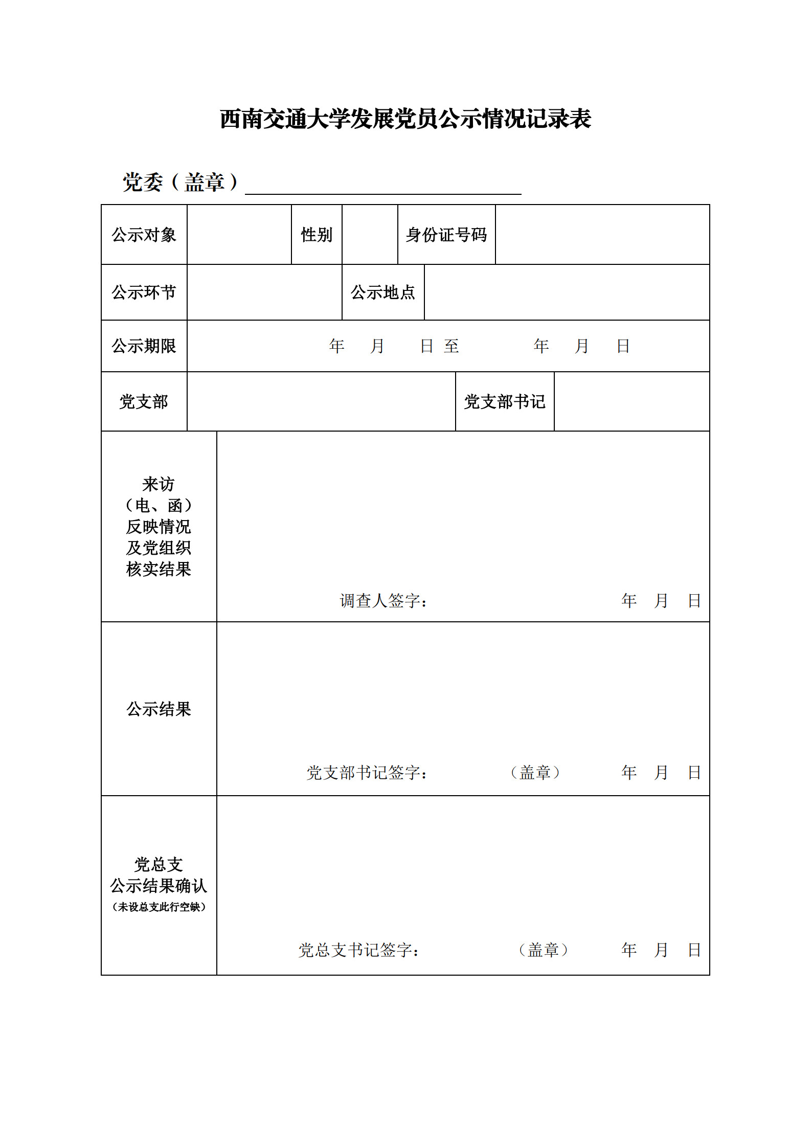 bevictor伟德官网发展党员公示情况记录表撰写指南: