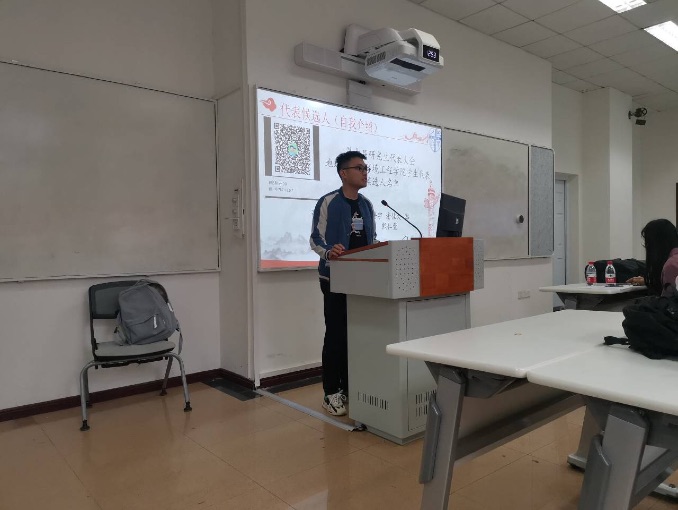 会议开始前全体起立奏唱国歌,然后崔宇龙老师进行致辞,并表达了对研究生会工作的要求和鼓励。