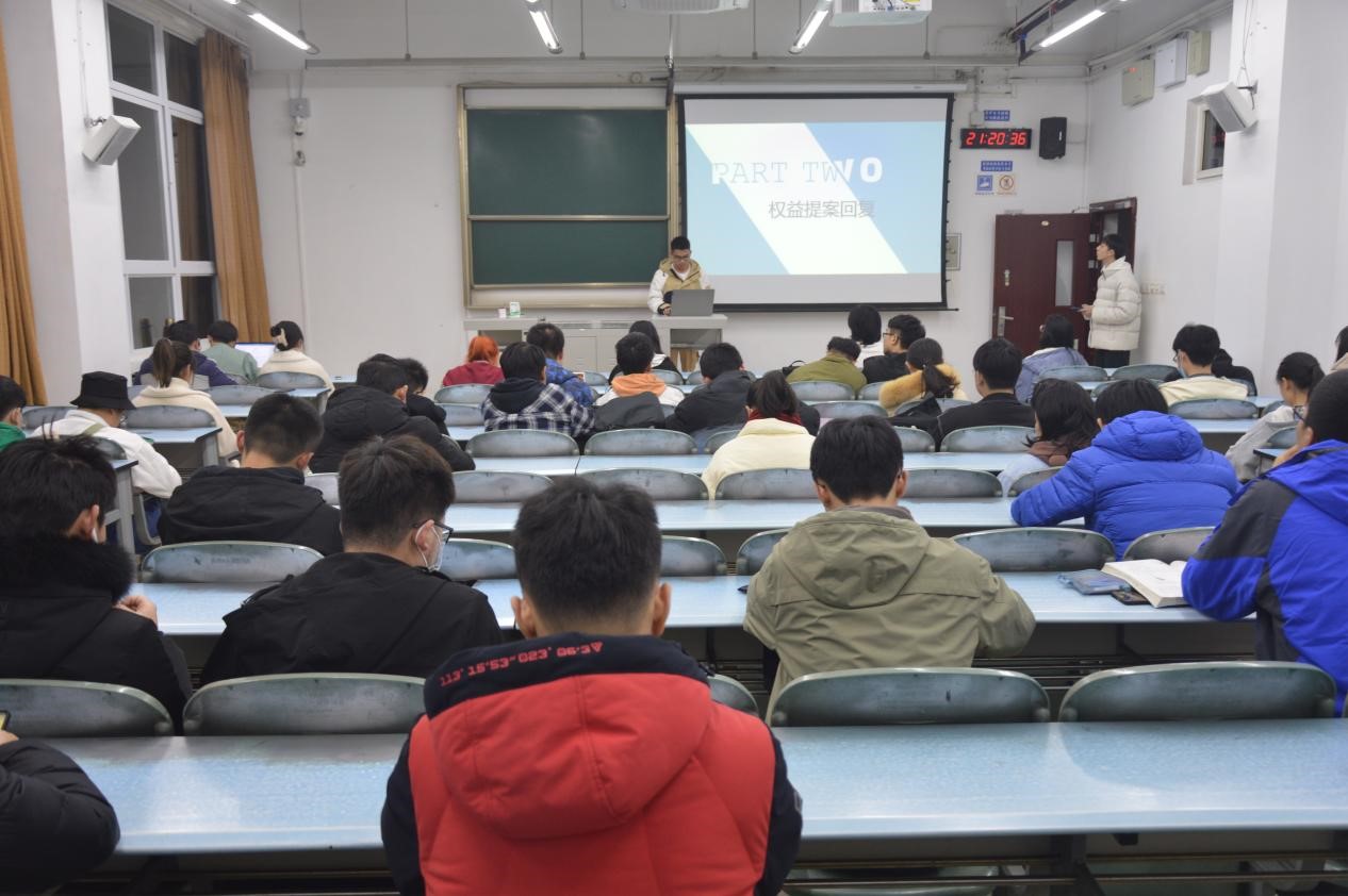 12月8日晚,bevictor伟德官网于X2221召开第二次院班联动权益大会。员工园区与事务中心主席陈婧、副主席姜亮亮、生活部部长李承泽以及各班生活与权益委员参加本次会议。员工园区生活部副部长王一旭担任主持人。