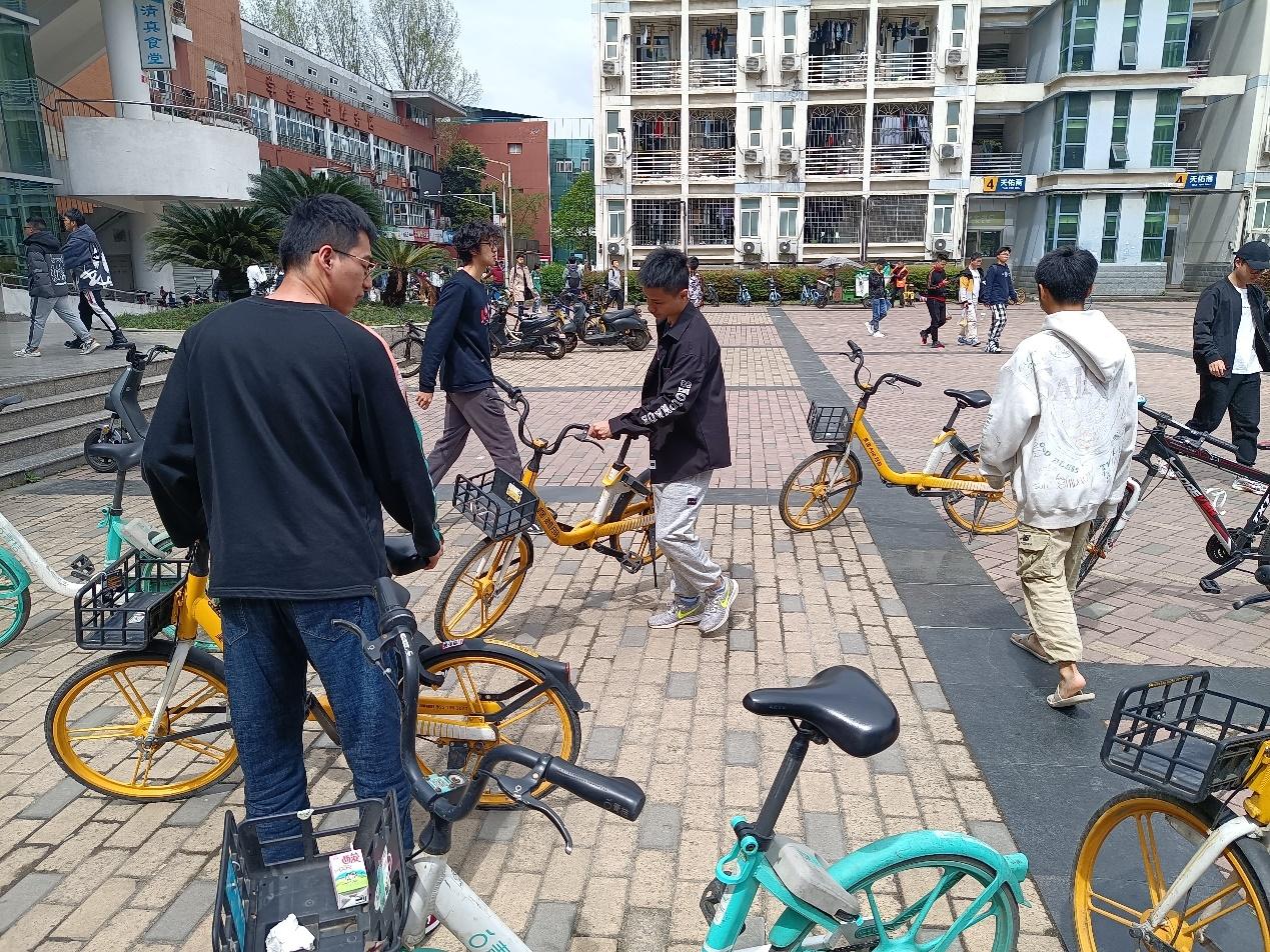 本2019级地质第四团支部通过在一食堂门口摆放共享单车的形式开展了本次“喜迎二十大,青春在行动”主题实践团日活动。在学习之余,我们也应该力求从身边的每一件小事做起,让文明有序潜移默化进我们的生活学习中,提升校园形象的同时增强自我的修养,做一名合格的青年老员工。