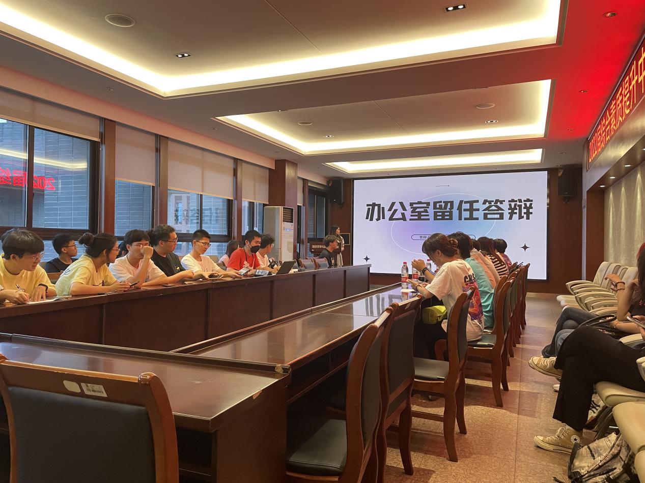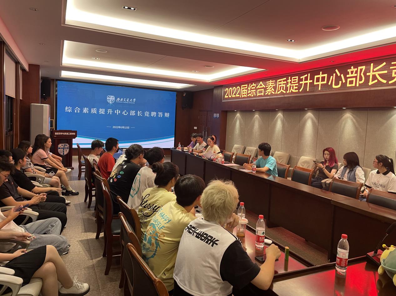 2022年6月12日晚7点半,2021-2022学年综合素质提升中心学年工作总结暨第二届综合素质提升中心干部留任竞选大会在X4520召开。参会人员有:综合素质提升中心指导老师董可老师,员工会主席陈荩娜,综合素质提升中心主席团成员李京伦、马明宇、艾依萍、叶逸辉、卡米浪,综合素质提升中心部长团以及参加竞选答辩的17位候选人。