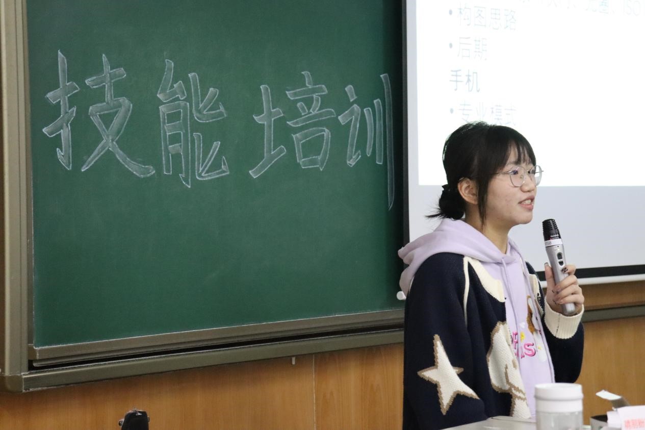在视频剪辑培训环节,技术部部员胡嘉铭精心准备视频素材,认真进行培训。他从素材导入、视频合成、视频渲染、图层调整等阶段入手,层层深入,将视频制作的完整流程展现在同学们面前,让同学们有了更加深入的认识。