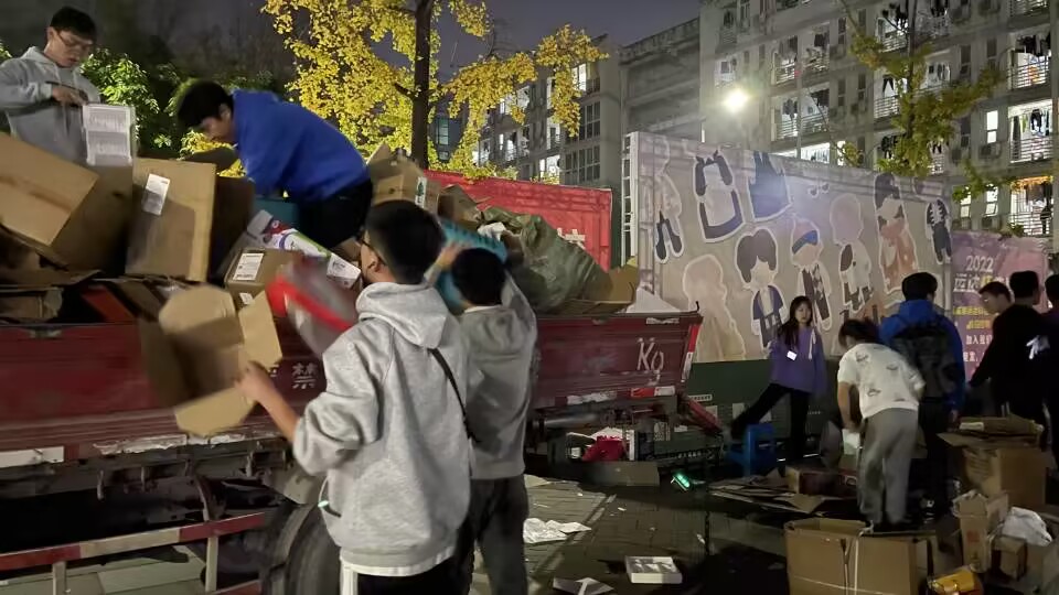 傍晚,志愿者们开始对收集到的废品进行整理分类,在地学青协许多志愿者的共同努力下,各类废品被整理的井井有条,并帮助收废品的师傅装车回收纸板和塑料瓶,最终收取废品总重量约2吨。