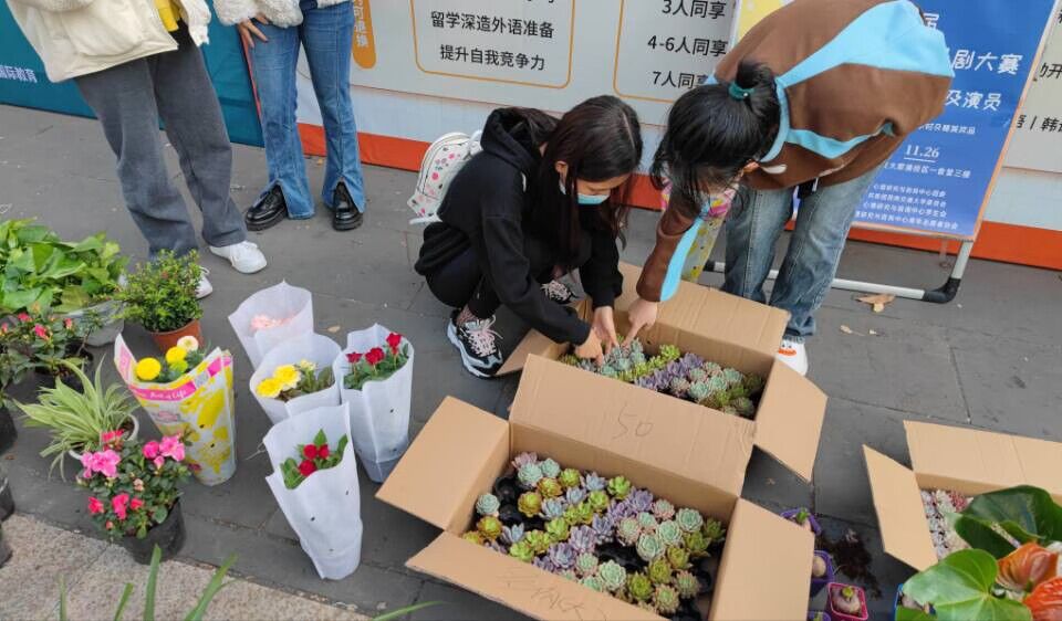 11月19日和11月20日,地学青协在南区二食堂前开展了为期两天的废品换鲜花活动。秉承着绿色发展、节约资源的理念,地学青协在全校范围内回收废品并兑换成相应的鲜花送给参与活动的同学。本次活动共吸引了超过1600名师生积极参与,取得圆满成功。