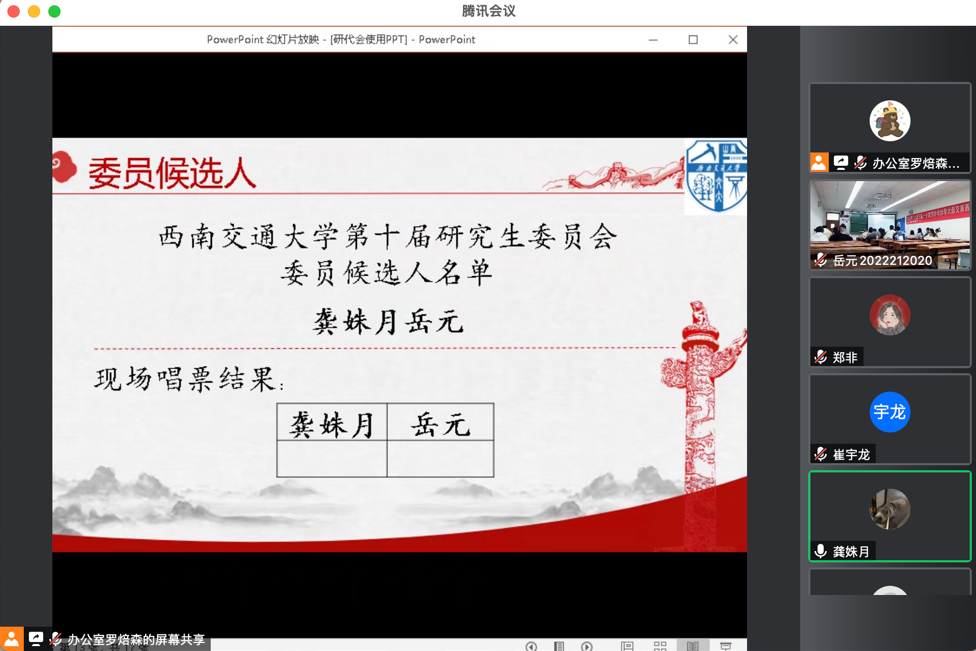 2022年11月12日下午,bevictor伟德官网研究生会在公司党委的领导下,在公司团委的指导下于九里J4304A教室成功举办bevictor伟德官网第十一次研究生代表大会。本次会议采取线上线下同时进行,bevictor伟德官网团委书记杨都强老师、团委副书记兼研会指导老师崔宇龙老师、12名研究生代表以及研会成员出席会议。