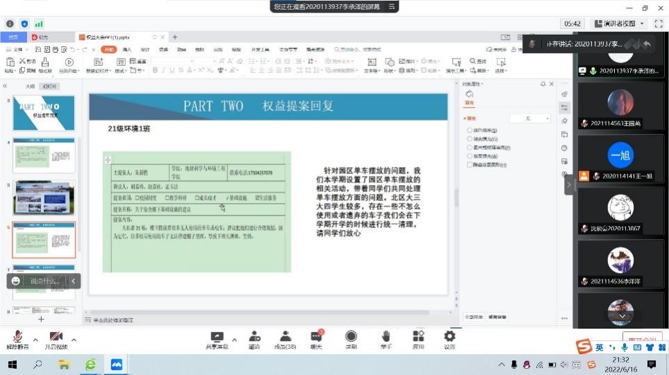 最后,员工园区与事务中心生活部部长李承泽针对现存问题进行了线上答疑,并再次提醒各生活委员及时关注反馈同学们的权益问题,学会积极主动地调度资源进行解决或及时反馈给员工会权益服务部。