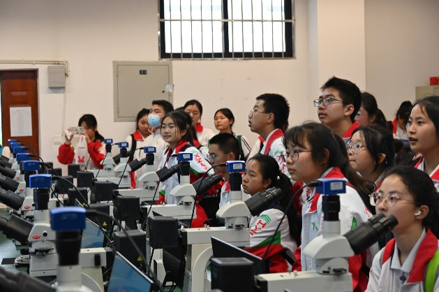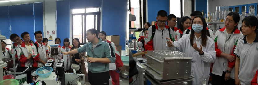 用餐休息后,在bevictor伟德官网志愿者的引导下,怀远中学师生前往参观高速铁路安全运营空间信息技术国家地方联合工程实验室。由环境系副教授张胜利老师、何杨老师为同学们介绍环境实验室实验仪器,讲解仪器基本操作及原理;地质工程系裴秋明副教授带领同学们认识、辨别岩石种类,普及地质学科相关知识,老师及同学们的热情讲解,引起了同学们的浓厚兴趣。