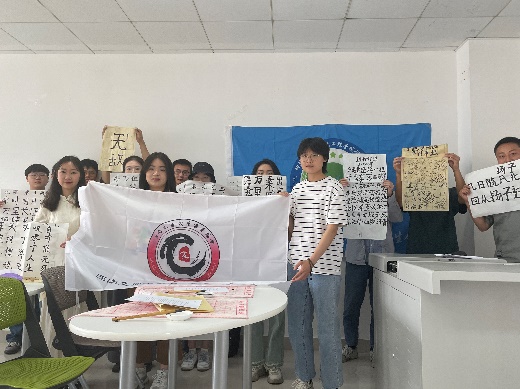 最后,随着毛笔一次次拂过纸张,本次“书写红色诗词·传承五四精神”纪念活动圆满结束。放眼一百年后的今天,赋有时代使命的共青团员积极奋战在建设祖国的第一线,继续发扬着伟大的“五四精神”。