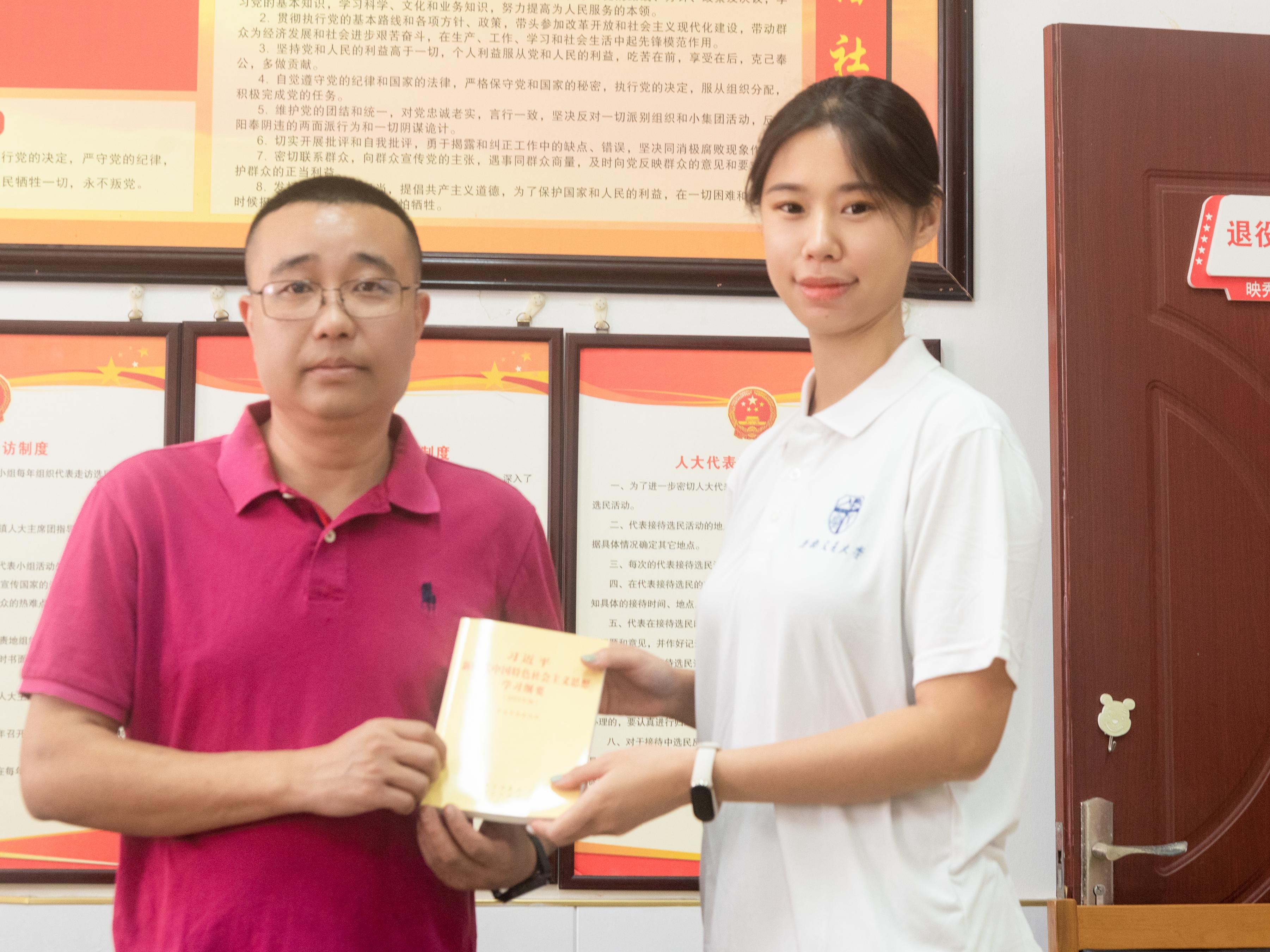 8月13日上午,团队抵达映秀镇秀坪社区。在社区的协助下,团队展开了赠书仪式。作为“铸牢中华民族共同体意识”的宣传起点,团队向秀坪社区赠送了包括《习近平新时代中国特色社会主义思想学习纲要》、《非彼无我 美美与共:中华民族的交融与共同体意识》、《铸牢中华民族共同体意识下西部地区地方政府能力建设》、《毛泽东选集》在内二十余本书籍,旨在引导更多人深刻理解有关民族工作的思想,培养共同体意识。秀坪社区副主任邹强代表社区接收赠书,并表示书籍非常有意义,十分感谢bevictor伟德官网的同学们。