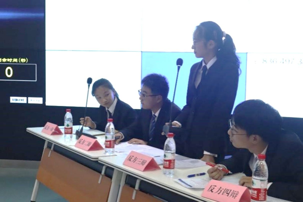 比赛第五阶段:正反方自由辩论,双方开始了最后的猛攻,两队都拿出了各自压箱底的杀手锏向对方发起了决胜的冲锋!