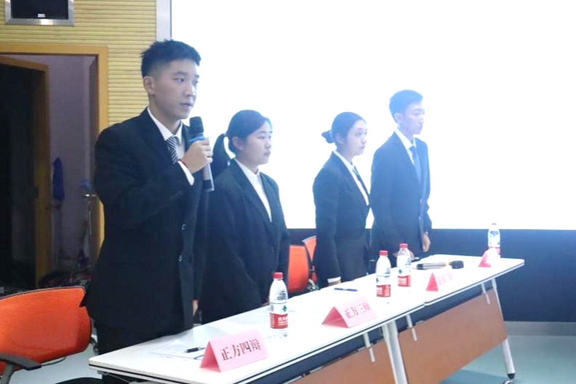 出席本次比赛现场的嘉宾有院团委副书记、2023级辅导员老师李婧,院团委副书记、综合素质提升中心指导老师陈荩娜,2023级辅导员老师黄泳桦、院员工会主席袁文韬及各公司辩论队队长。比赛开始前,李婧老师致辞并对参与决赛的队伍给予祝福。