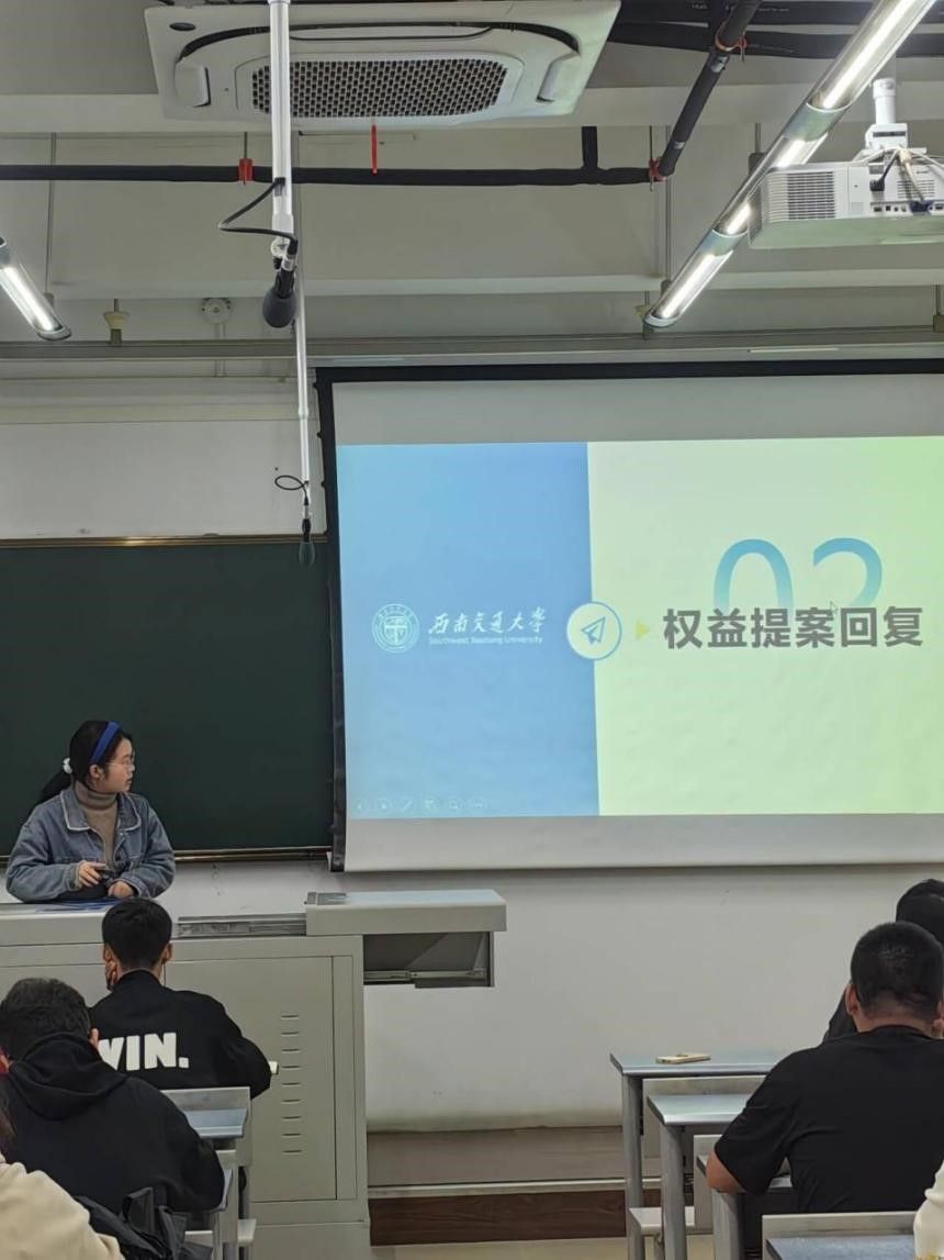 接下来员工园区与事务中心副部长孙钰娴就开学以来收集的权益提案进行回复和解答。