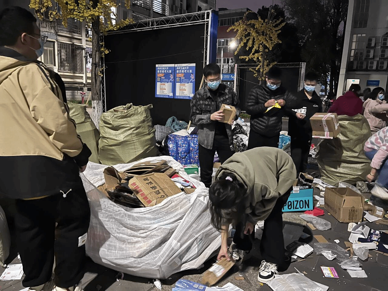 第二天晚上七点,志愿者们帮助将废品装车后,也开始收拾活动场地,将现场遗留的垃圾都清理干净,帐篷、桌椅等归还,活动最后也圆满结束啦。