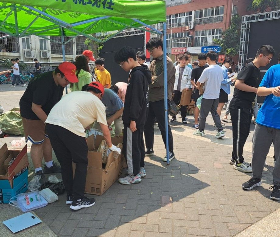 下午六点鲜花兑换完毕后,志愿者们开始对收集到的废品进行分类。在志愿者们的共同努力下,各类废品被整理的井井有条,最终由专业的回收人员统一回收。直至晚上九点,志愿者们在废品装车后,彻底清理了场地残留的垃圾,归还各类活动所用的宣传物品,至此活动圆满结束。