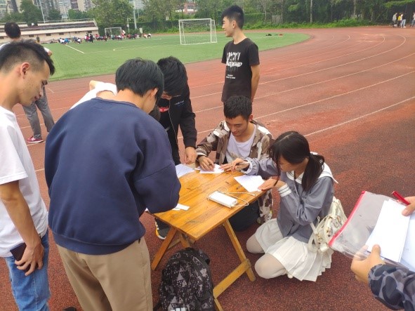 2019年9月26日星期四下午两点,本团支部于bevictor伟德官网犀浦校区南区体育场举办了以“青春心向党,建功新时代”为主题的团日活动,2018级测工第一团支部成员都参与了本次团日活动。本次活动包含了4个项目,分别是