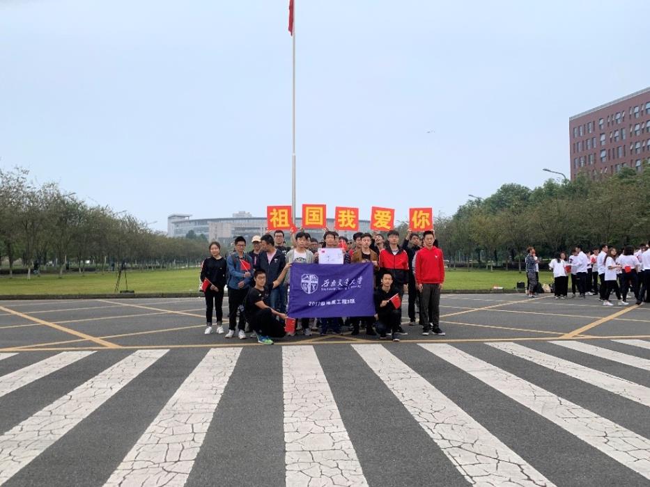 2019年9月23日,地质三班的同学们与国旗班,党支部,员工会的同学们以及辅导员李国欣老师在国旗台下一起升国旗,唱国歌,一起用青春告白祖国。