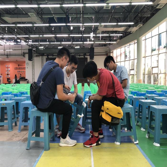 令人赞许的是,新生们为防止板凳腿划伤地板而为每一个板凳腿裹上了脚套。一丝不苟、团结合作,既拉近了彼此之间的距离,收获了友谊与归属感,也为办好开学典礼做出了属于自己的那份贡献,向公司交上了一份优异的答卷。