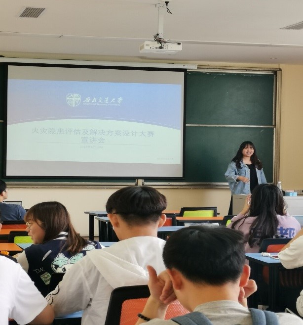宣讲会主要分为两个场次,李婧、李国欣分别对大一年级和大二年级同学从科创活动及平台、地学科技月相关介绍、消防专业的火灾隐患评估及解决方案设计大赛的比赛流程和报名方式等方面进行讲解。