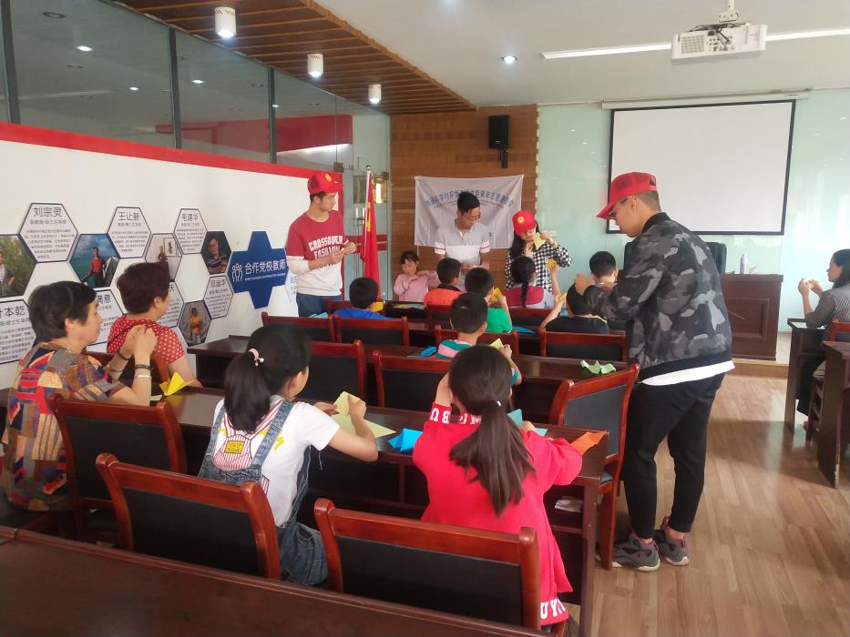 下午四点,志愿者和小朋友们一起在横幅前合影留念,每一个小朋友都拿着自己的折纸对镜头露出笑脸。志愿者同时也将提前准备的折纸作品依照小朋友们的选择和喜好都送给了他们。活动圆满结束,待家长和小朋友们陆续离开后,志愿者们取下横幅和会旗,并打扫了场地卫生,关好门后离开。