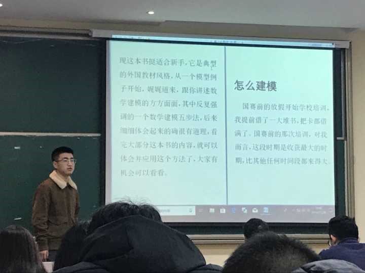 然后他为我们推荐了一些适合新手的入门书目。他尤其推荐我们由姜启源主编的《数学模型》一书。他从自身经历出发,讲解了看书的重要性。