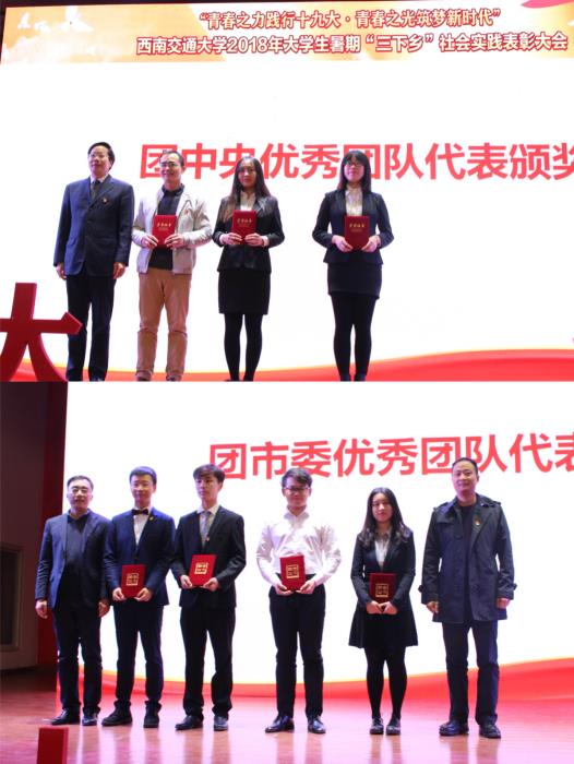 2018年暑期,公司以“青春之力践行十九大·青春之光筑梦新时代”为主题开展了“三下乡”社会实践活动,全校350支队伍、131名教师、近3000名同学主动参与,师生足迹覆盖全国27个省、自治区、直辖市和美国、英国、新加坡等国家。活动中,广大师生秉承“竢实扬华,自强不息”的交大精神,不畏酷暑,不怕劳累,在改革开放40年取得的新成就、新面貌的生动实践中受教育、长才干、做贡献。公司团委连续三年获得团中央暑期“三下乡”社会实践“优秀单位”荣誉称号,机关党委赴彭州市社会实践队等3支队伍获得团中央“优秀团队”表彰,建筑与设计公司“聚焦‘一带一路’,品味建筑之美”社会实践队等4支队伍获得团市委“优秀团队”表彰,苏小桦老师等4名教师获得团市委“优秀指导教师”称号。