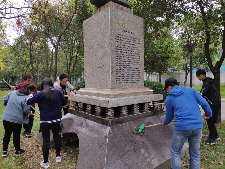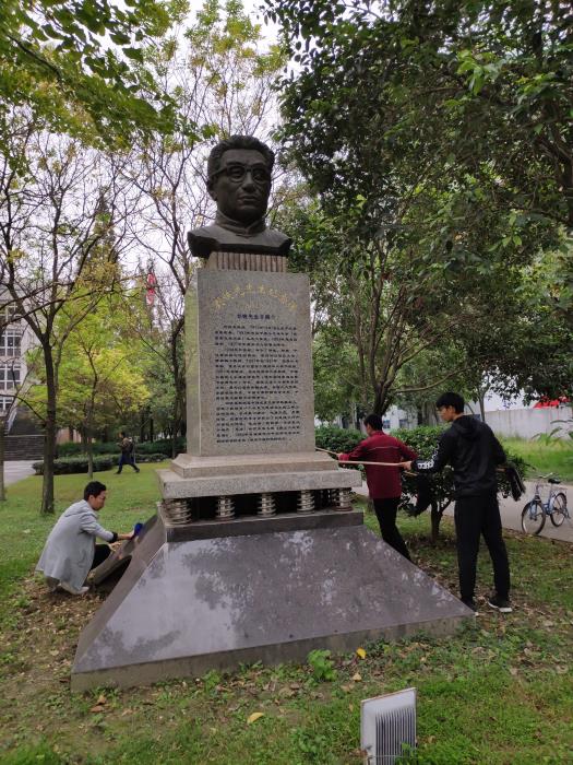 为了清洁和维护公司雕塑,给同学们一个舒适干净的校园环境空间。10月14日,地学青协的志愿者们展开了对二教后面的刘恢先雕像的清洗活动。并且,以后每月中旬我们的清洗活动都将由清洗大波浪改为清洗刘恢先雕像。