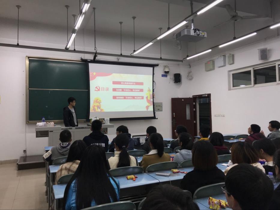 地信一班于10月20号举行了团日活动,我们进行了对十九大报告的解读以及对于新党章的学习,明白党的十九大会议的主题:“不忘初心,牢记使命”研究了新的党章,其中提到习近平新时代中国特色社会主义思想,让同学们感受祖国在变强大之时对自己要求更加严格,不负自己的青春,作为祖国的希望努力学习,积极前行。