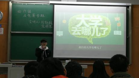 接下来走上讲台的是一位帅气大佬,宋梓荣学长。他的《大学去哪了》PPT融合动漫与幽默的元素,牢牢吸引着同学们的目光。这位来自交大新媒体的学长从贴近同学们生活的问题出发,引发同学们思考,给同学们带来远超应对四六级的帮助。那一篇篇翻过的漫画风的图片充分展现了这位学长优秀的技能和帮助学弟学妹们的热心。