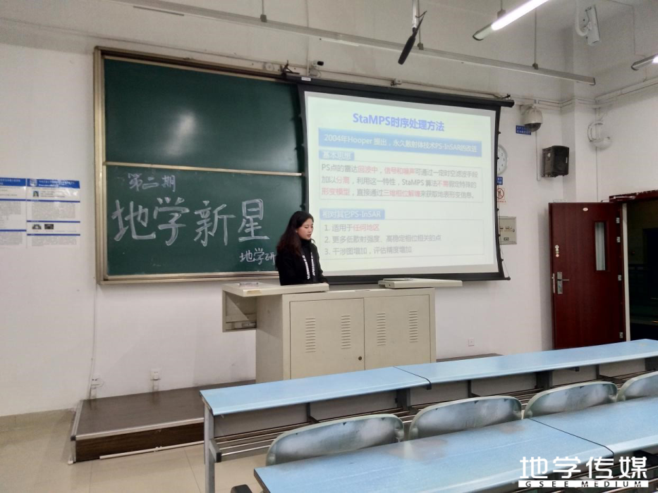 首先是由2017级硕士研究生沙永莲作了题为“天津地区InSAR形变监测与分析”的报告,沙永莲对研究背景与意义、StaMPS时序处理方法、Sentinel-1A数据分析、天津地区沉降探测与分析及总结进行讲述。