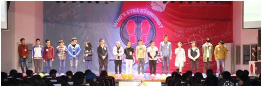 决赛之夜,群英共聚黍园三楼,共同参与这一场脑容量的比拼,速度的较量,心理的战场。开赛之时,来自员工会舞蹈队的精彩舞蹈点燃了观众的热情,也无形间缓和着场上紧张的气氛。十六名选手接着上台简单地介绍了自己,一站到底决赛之夜的第一声枪响便正式打响。