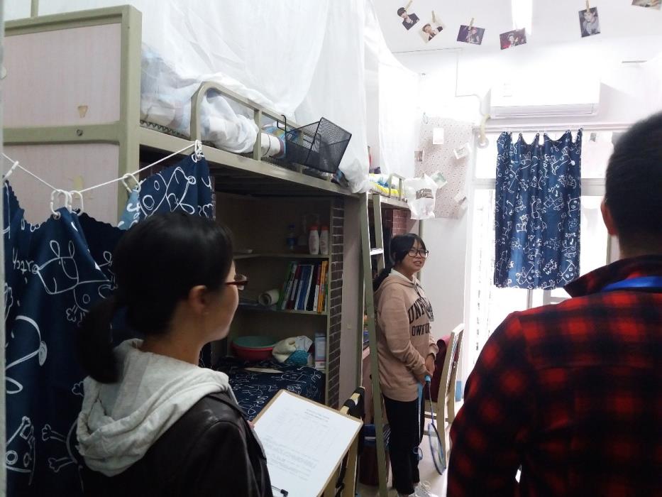 参赛寝室成员向评委们详细地介绍了装潢风格、创意亮点,辅导员也给出了完善建议,同学们在谈话中收获了许多。同时,辅导员也走访了其他新生寝室,询问了生活与学习上的问题,并提醒新生注意季节变换,给新生带去了温暖。