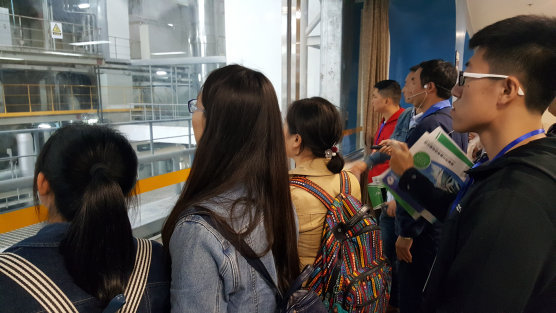 下午2点,队伍到达工厂,在工作人员的带领下,观看了《万兴生产工艺》宣传片,从视频中初步了解发电厂的工艺流程。接着,在发电厂技术人员的带领下,具体参观了固体废物的处理过程,对于视频中看到的操作有了更直观的认识,并在讲解人员的讲解下,更进一步的了解到焚烧处理固体废弃物并发电的生产现场情况以及生产工艺。
