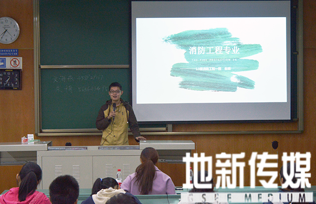 在X4155教室,首先由朱楠同学进行发言。朱楠的发言主要包括三个方面:消防工程专业介绍、学习经验分享和各个竞赛项目的介绍。一开始,朱楠正式详细介绍了消防专业,接着介绍了消防专业主干课程,包括必修课程和重要通识课;然后分析了消防专业发展方向。在读研方面着重介绍了读研选择的各个公司的团队力量、试验条件及研究方向,在保研方面着重分析了保研科目在各学期的分布以及难度比较。接下来,朱楠结合自己大学的学习生活和同学们分享了自己认为学习过程中最重要的几点要求:一、从第一个学期开始让自己保持优秀。二、朱楠认为最重要的一点是,上课不玩手机,抓紧课堂时间,提高课堂要效率。三、提前做好老员工涯规划。四、关于课堂提问,五、自己独立完成作业。写作业的过程就是复习的过程,尽量独立完成作业。最后,朱楠结合自己的参赛经历介绍了适合消防专业同学参加的各竞赛的具体情况。