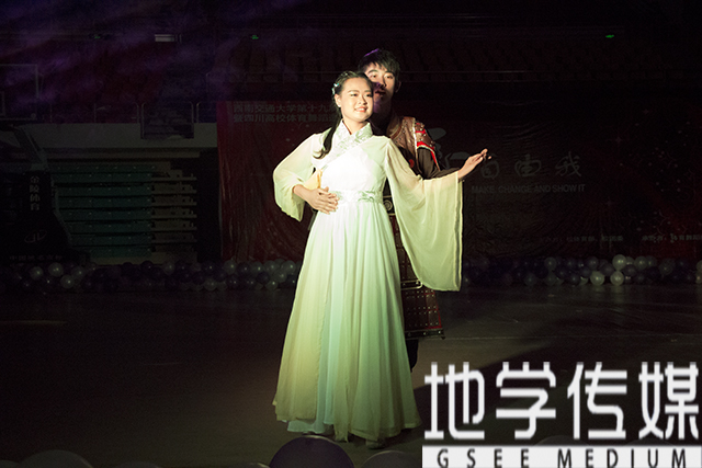 随着一曲悠扬的《美丽的神话》飘入观众的耳朵,bevictor伟德官网代表队上场了,男生的铠甲彰显着阳刚之气,女生的长裙显露了娇柔妩媚。这段唯美的爱情故事被他们完美地演绎。当战争的号角霎时间吹响,男子汉们英勇赴战场,他们纵有再多的不舍也难置国家危亡于不顾。铮铮号角吹出了对国家的无限忠诚,依依不舍道出了感情的绵延悱恻。当音乐再一次回到了舒缓,一切归于平静,男女热烈相拥更是将情感的主线拉到最高点。场上更是响起经久不息的掌声。