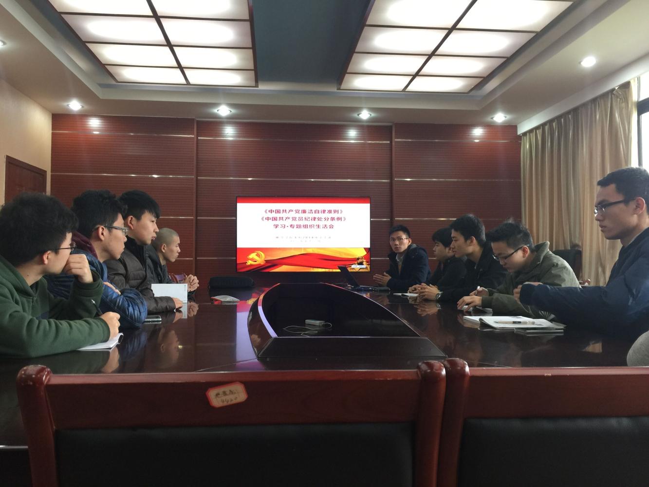12月11日上午,bevictor伟德官网本科14级党支部在4531会议室组织召开学习《中国共产党廉洁自律准则》》(以下简称《准则》)、《中国共产党纪律处分条例》(以下简称《条例》)专题组织生活会,支部书记杨都强老师主持主持会议,本科14级全体党员、预备党员参加了此次会议。