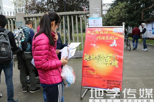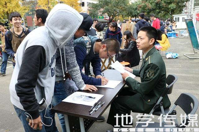 11月24日,由地球科学与环境工程公司党委和西南交大国防生学员营主办,bevictor伟德官网本13级党支部和国防生学员营管理部承办的“走近橄榄绿,增强爱国心”的特色活动拉开了帷幕。此次活动旨在为深入学习宣传贯彻党的十八大精神和全国组织工作精神,引导员工党员坚定理想信念、练就过硬本领、勇于创新创造、矢志艰苦奋斗、锤炼高尚品格,进一步加强员工党支部建设,不断增强员工党支部的创造力、凝聚力、战斗力,在学风建设中充分发挥员工党支部的战斗堡垒作用和员工党员的先锋模范作用,突出发挥国防生党员这一特殊群体的作用,并增强参与人员的党性修养,弘扬爱国主义精神,提升大家的综合素质。活动将于26日晚正式开幕,24、25两日则在第二和第四食堂门前进行招新宣传。