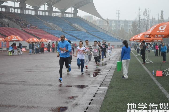 11月14日下午4:10,男子1000米的比赛在北区田径场举行,代表地院参赛的选手有周文、尹子旭等。天气不算太佳,飘着毛毛细雨,但是运动员们激情不减,用毅力前行。