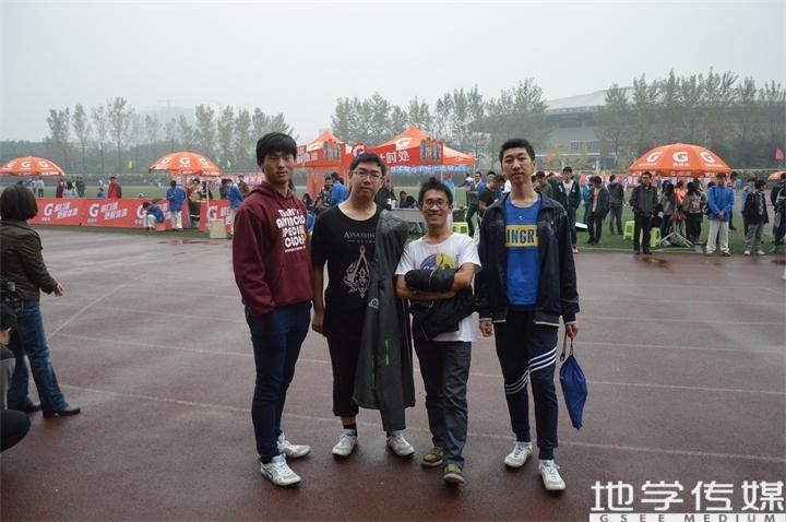 随后进行的是教职工男子4*100米,同学们看见自己的老师与辅导员上场激动异常,看台上响起阵阵掌声,呐喊声与欢呼声。听到这些,教职工们更加努力,希望能为院争光。今年地院派出了廖昕,杨都强,陈建奇,刘了四位老师出阵。发令枪响,一棒的廖老师一马当先,连续超越好几名老师后,熟练的将棒传递给了二棒的杨辅导员,杨辅导员不甘示弱,继续稳定局势,将棒交给三棒陈老师,陈老师继续拉大领先水平,最后将棒稳稳交与四棒的刘老师,刘老师奋力冲刺,使出全力,最终第一个冲过终点线,拿到了小组第一名。这一刹,观众们沸腾了,选手们也激动的击掌庆贺。“漂亮!厉害!”人们纷纷前来祝贺,脸上充满胜利的喜悦。最终的总排名里,我们地院拿到了教职工4*100的季军,这也是我们有史以来获得的最好成绩,真心为他们庆贺!