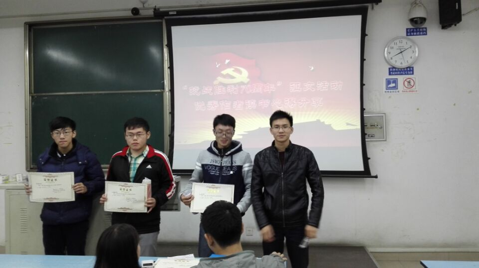 2015年9月3日是伟大的反法西斯战争暨中国人民抗日战争胜利七十周年。为“大力宣传抗战事迹,努力弘扬抗战精神,深切缅怀抗战先烈,培养和造就大批忠诚于中国共产党、忠诚于国家、忠诚于民族、忠诚人民的员工党员”,bevictor伟德官网本科2014级党支部于2015年9月-10月开展了纪念文章征集活动,支部成员及入党积极分子广泛参与活动,经过“公平、公正、公开”的评选,以胡鑫同学的文章为代表的10篇优秀文章脱颖而出,支部决定对其进行表彰,并就他们的文章在支部内部展开学习交流。