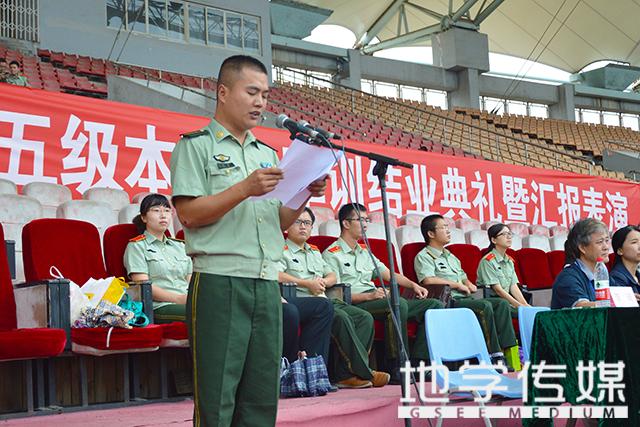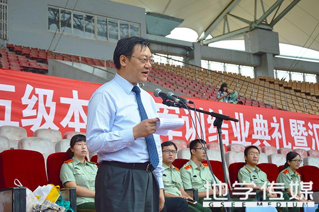 相信如此激情一定能打开新生们新学期、新生活的大门!随后,军训团长、武警四川总队成都市支队四大队教导员李学勤少校宣布了“军训优秀学员表彰令”。在此希望这些同学能成为所有人的榜样,竖立起新生的标杆,在今后的生活中俞行愈好。西南交大党委副书记陈志坚教授也在发言中指出:在阅兵式中,同学们的表现,充分展现了西南交大学子潮气蓬勃、积极向上、热爱祖国、热爱国防的精神面貌。同时表示因为今天的天气情况,同学们准备的很多表演并没有上场呈现出来,但是在今后的活动中这些经历会给同学们更多展示的机会。最后希望同学们在今后的学习生活中将军训精神继续发扬。