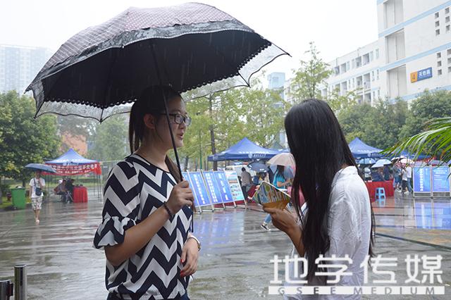 雨一直下,但接待处的人们热情未减。家长们冒雨陪同孩子前来报道,青协成员贴心地将早已准备好的雨伞递上。笔者在与青协团队负责人的交谈中了解到:他们早在20号便对迎新工作作出了具体安排,各个部门的成员也明确了迎新工作的整个流程。他们与员工会共同协作,进行交接班,合理分配了任务,有条不紊地查看新生录取通知书、扫描条形码、进行入寝引导……在谈到对学弟学妹们的印象时,他们表示:这一届的新生都十分活泼开朗,并不因为初次见面感到不好意思。也正是青协团队的这份付出和温暖,让这些新同学有家的感觉。