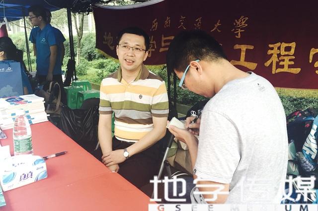 8月25日清晨,在迎新团队忙碌的身影中迎来了新生报道的第二天。一大早地学迎新点就陆陆续续的迎来了前来报到的新生。上午9点30时左右,地学党委副书记傅尤刚莅临迎新点视察迎新工作,他首先向新生辅导员孙彦文老师询问了新生报道的情况以及迎新团队的工作情况,并慰问了辛苦工作在台前幕后的迎新人员,同时对迎新工作给予了充分的肯定。视察结束后,记者也有幸采访到了傅尤刚副书记。