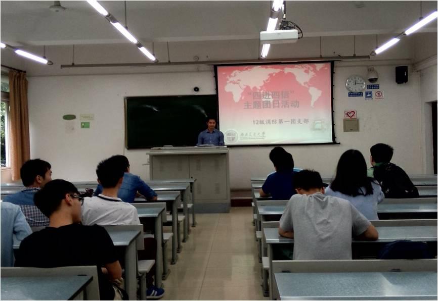 2015年5月21日中午,2012级消防一班团支部在X1228教室成功举办了“四进四信”主题交流会团日活动,支部全体成员满怀热情参与此次团日活动。