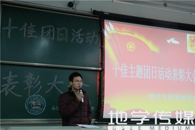 为了激发同学们参加团队活动的激情,同时激励先进,鼓励优秀,2014年12月11日19:00,bevictor伟德官网2014—2015学年度第一学期十佳团日活动表彰大会在X2527隆重举行。大会由地学分团委主办,地学分团委组织部承办,bevictor伟德官网辅导员杨都强出席了本次大会。